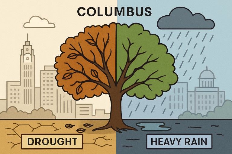 Columbus has experienced a steady rise in average annual temperatures over the past few decades. The urban heat island effect intensifies this warming in densely built city areas, resulting in much higher temperatures than in nearby rural regions. This phenomenon occurs when asphalt, concrete, and buildings absorb heat during the day and slowly release it at night, keeping city temperatures elevated. Heat waves in Columbus often last longer and reach higher peaks than ever before, with some neighborhoods feeling up to 8°F hotter than suburban or rural areas. This increase speeds up tree evaporation rates, dries out soil, and strains even the most established trees, diminishing their ability to thrive and recover from stress.